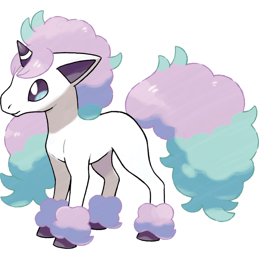 Galarian Ponyta, despite its aspirations clearly not being the highest in the world, does a lot to adjust the body shape of Ponyta and embellish the design in ways that just work better in a 3D environment. The vibrant, fluffy mane and tail, softer shape language, and more expressive face all work in tandem to make something that feels fresh and new despite deviating fairly little from the original conceptually. This form does have the distinction of one of the worst reveals in the series’ PR history, with the utter drudgery of the 24 hour live feed of Glimwood Tangle not making for anything interesting despite how “realistic” it was purported to be, but oh well. I mention this because during that video a tail-less version of Galarian Ponyta was seen, speculated by some at the time to be based on Tam O’Shanter’s horse from the famous Scottish poem by Robert Burns, but it seems that was ultimately just an error in the trailer. Oh well, tangents aside this one’s pretty good.
